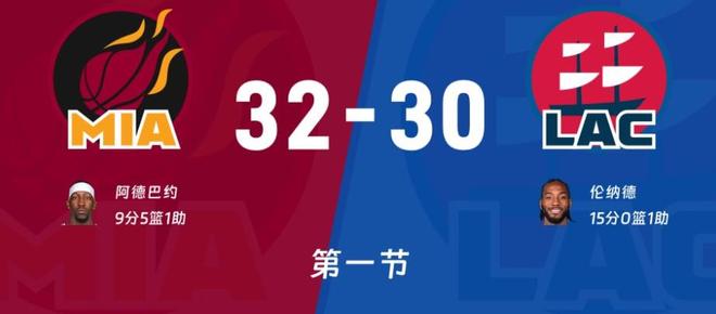 比赛进入第二节后半节,鲍威尔坚决突破上篮打成,祖巴茨想单打阿德巴约失败了,维金斯欧洲步放篮分差回到1分,伦纳德底线点名鲍威尔获得罚球机会,快船继续保持一个球权左右领先,拉松中距离不中回过头来被小卡单挑打成24-19,斯波教练喊出暂停。回到比赛米切尔突破抛投上分,祖巴茨内线被防下,维金斯三分打铁普林斯持球打被帽,丰泰基奥荒开科林斯三分命中双方来到24平,保罗大空位三分不中,维金斯单打科林斯命中,轮换阵容上来热火反超了。保罗完成抢断邓恩底角三分命中双方打起拉锯战,韦尔篮下强起造成科林斯犯规,这段时间科林斯效果不好,进攻端又上头出现低级失误。快船用出1大4小阵容,约维奇找到机会造成保罗犯规两罚全中,热火30-27领先来到三分,首节最后一分钟双方各自命中一球快船主场30-32落后2分!