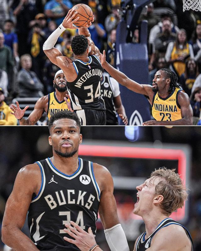 面对更小的防守者,阿德托昆博运球至左侧肘区,然后向右肩方向转身后仰跳投。终场哨声刚好在他出手后响起,篮球应声入网,帮助雄鹿队以117比115战胜了对手步行者队。