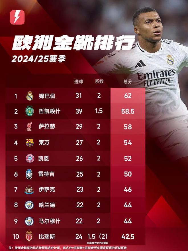 雷速体育10月30日讯 皇马官方发布公告,球队前锋基利安·姆巴佩将于当地时间明日下午1:30在伯纳乌球场VIP包厢领取24/25赛季欧洲金靴奖。